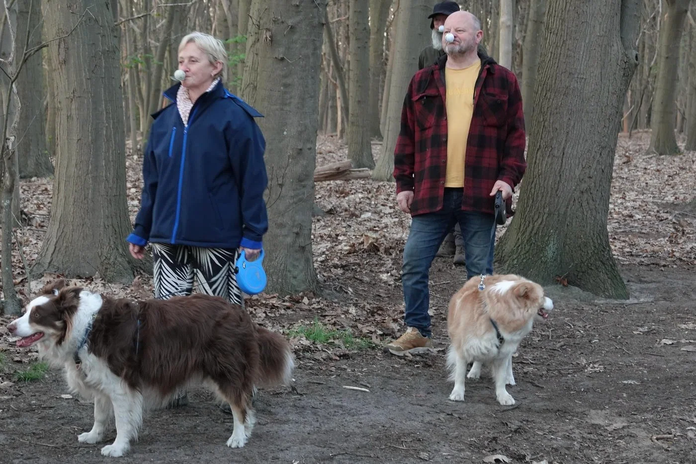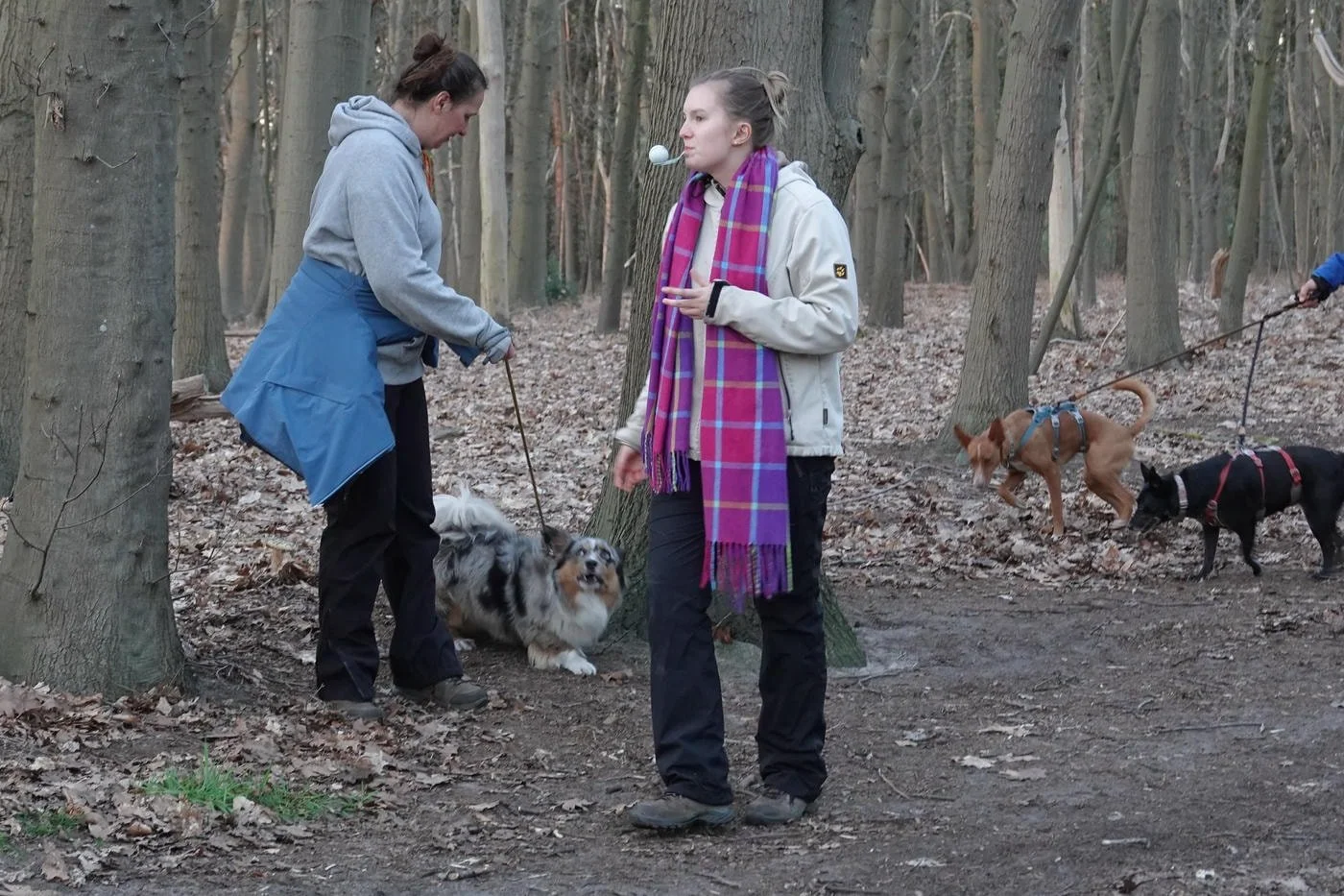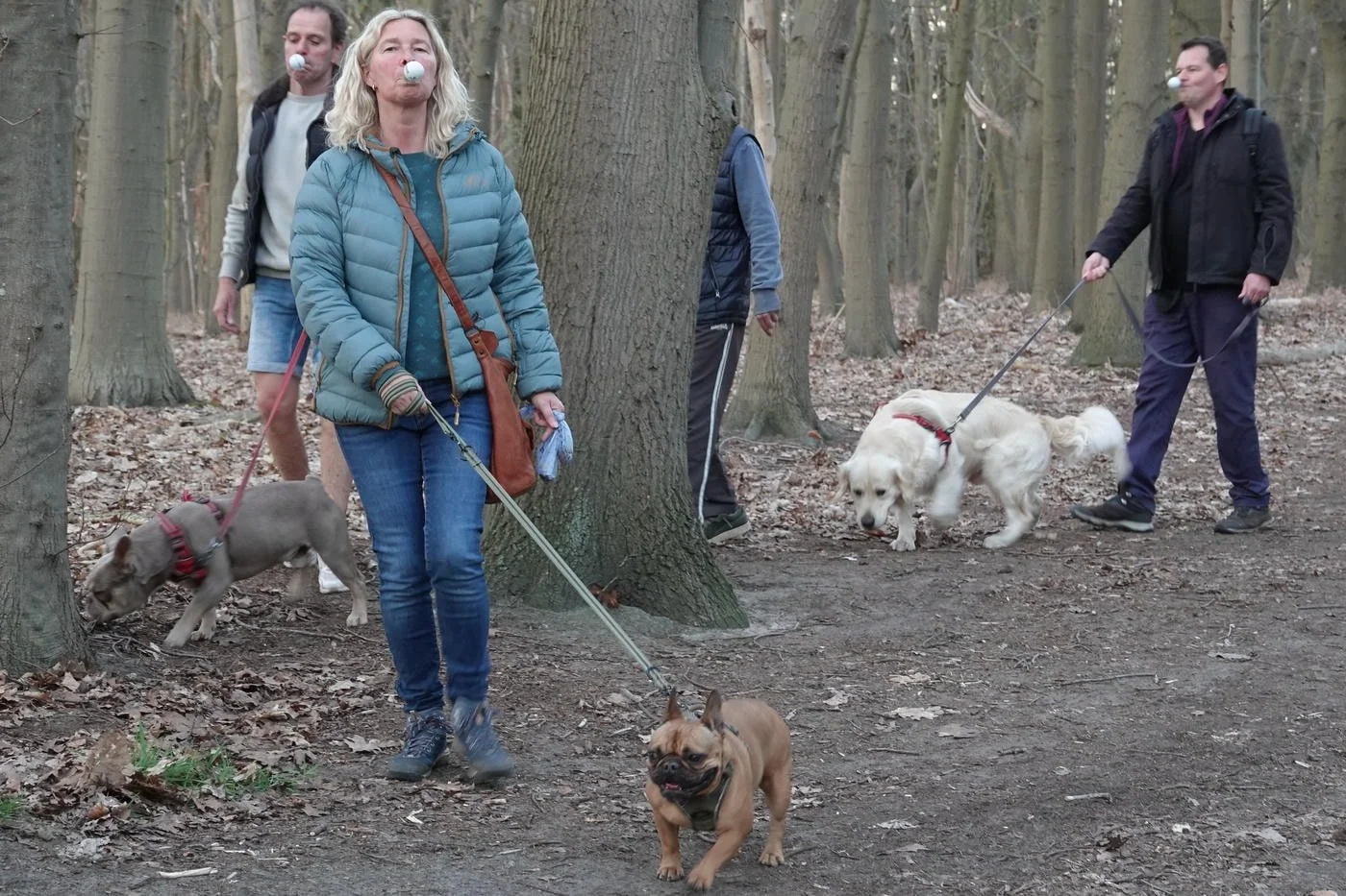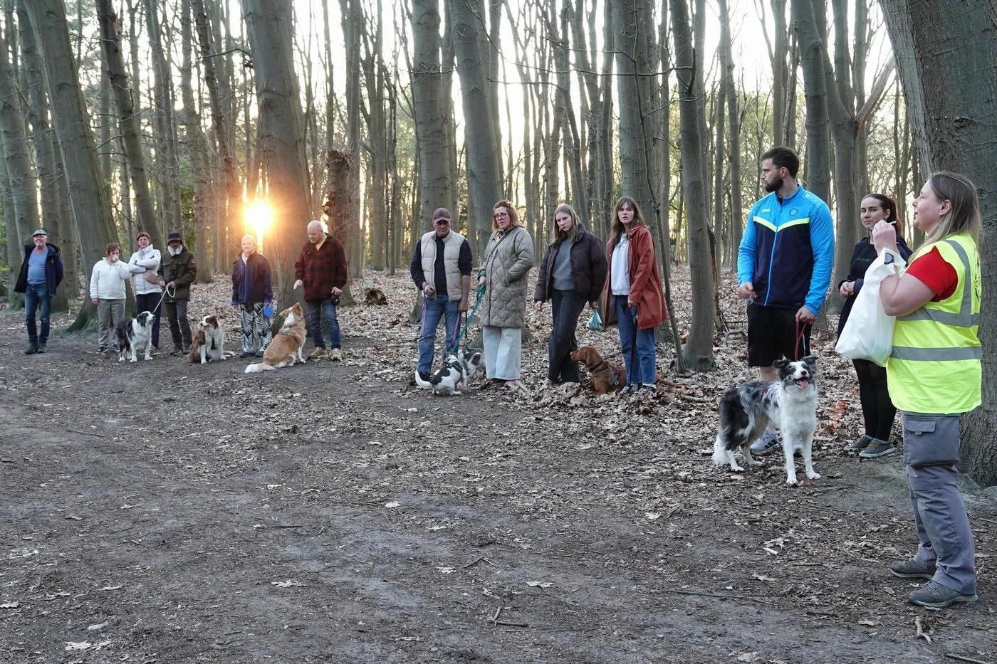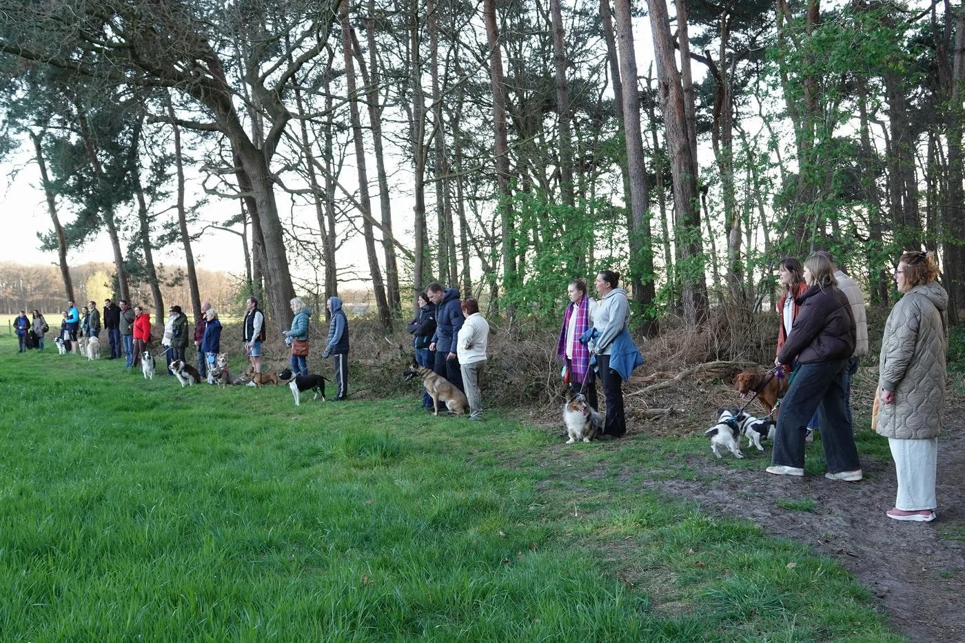 De honden waren zot als paashazen, ze snuffelden aan alles wat los en vast zat. Veel kwispelstaarten en een paar epische achtervolgingen rond de bomen later waren we allemaal kapot gelukkig.